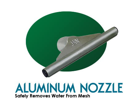 To speed up dry times, use this angled, heavy-duty 9" aluminum nozzle with almost any wet-dry vacuum to safely remove water from screen mesh. Trouble-free, lightweight and rust proof, milled smooth to prevent screen damage. Fits hoses with approximately 1-3/8" (35mm) O.D. In stock... Shipped the same day!